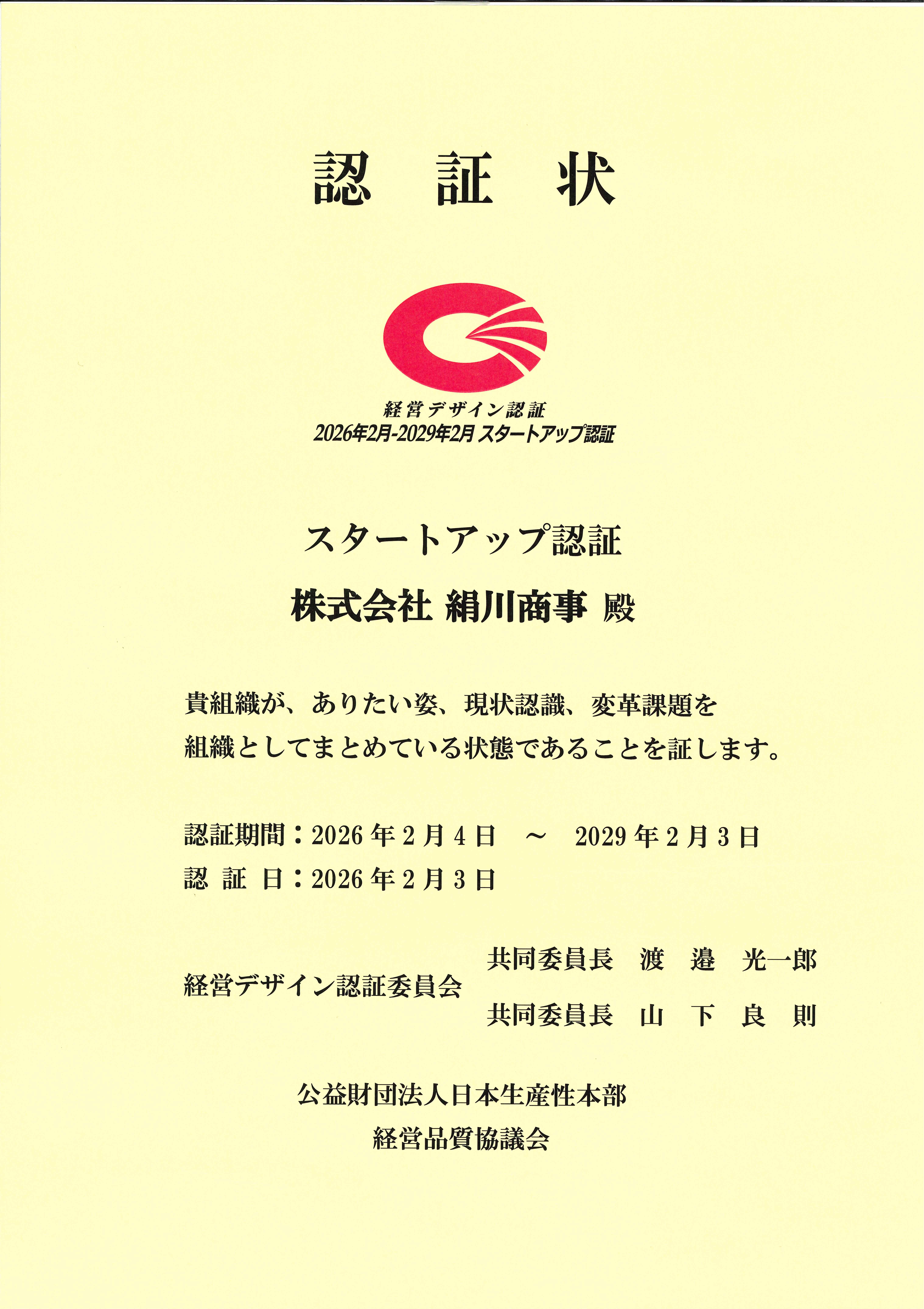 公益社団法人日本生産本部 経営品質協議会主催 経営デザイン認証スタートアップ認証企業として当社が認証されました。 これは、経営の「ありたい姿」「現在と今後の環境認識」「変革課題」が組織として明確に「見える化」されていると認められた組織を認証としており、全国から14社が選定されました。 これからの行動によって、たくさんの人々や地域、そして未来にハッピースマイルが生まれることを大切にしていきます。